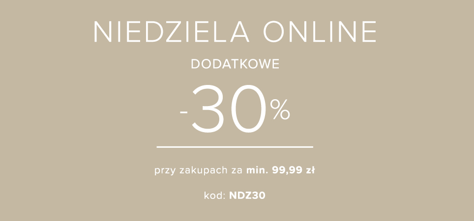 NIEDZIELA ONLINE! Dodatkowe -30% na WSZYSTKO z kodem: NDZ30
