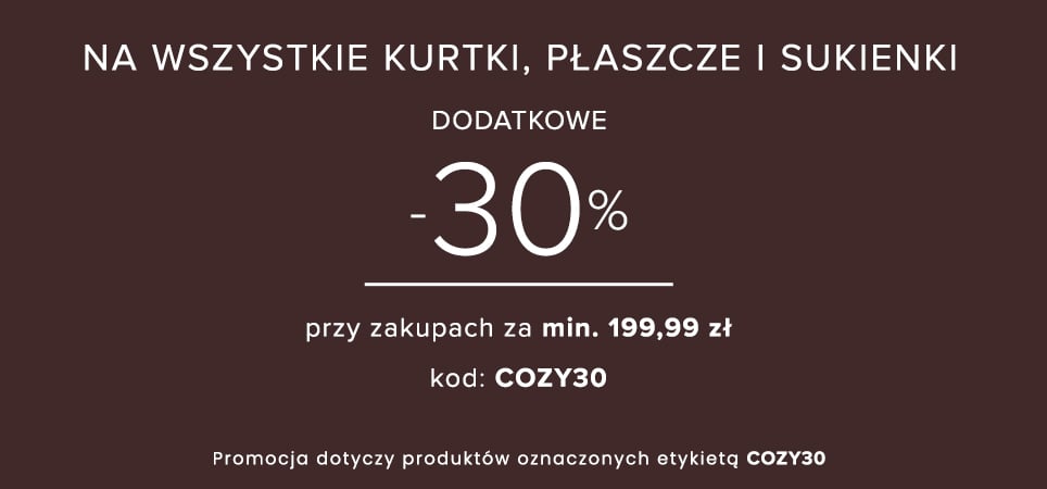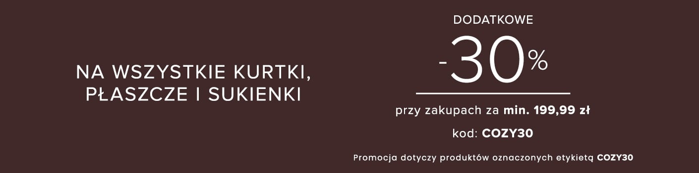 Dodatkowe -30% na KURTKI, PŁASZCZE i SUKIENKI przy min. 199,99 | Kod: COZY30