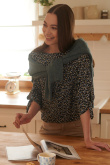 Luźny, turkusowy kardigan. Zapięcie na szereg guzików. Dekolt w kształcie litery V. Długie rękawy. Modelka na zdjęciu ma 173 cm wzrostu i prezentuje rozmiar 36.